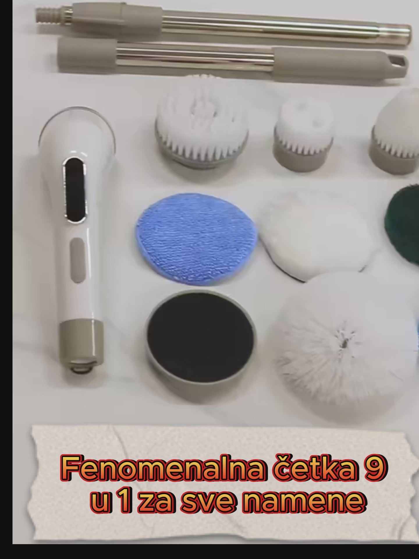 Olakšajte svakodnevno čišćenje uz 9-u-1 električnu rotirajuću četku – moćan i svestran alat koji se bori protiv prljavštine i tvrdokornih mrlja u kupatilu, kuhinji i svim prostorijama doma.