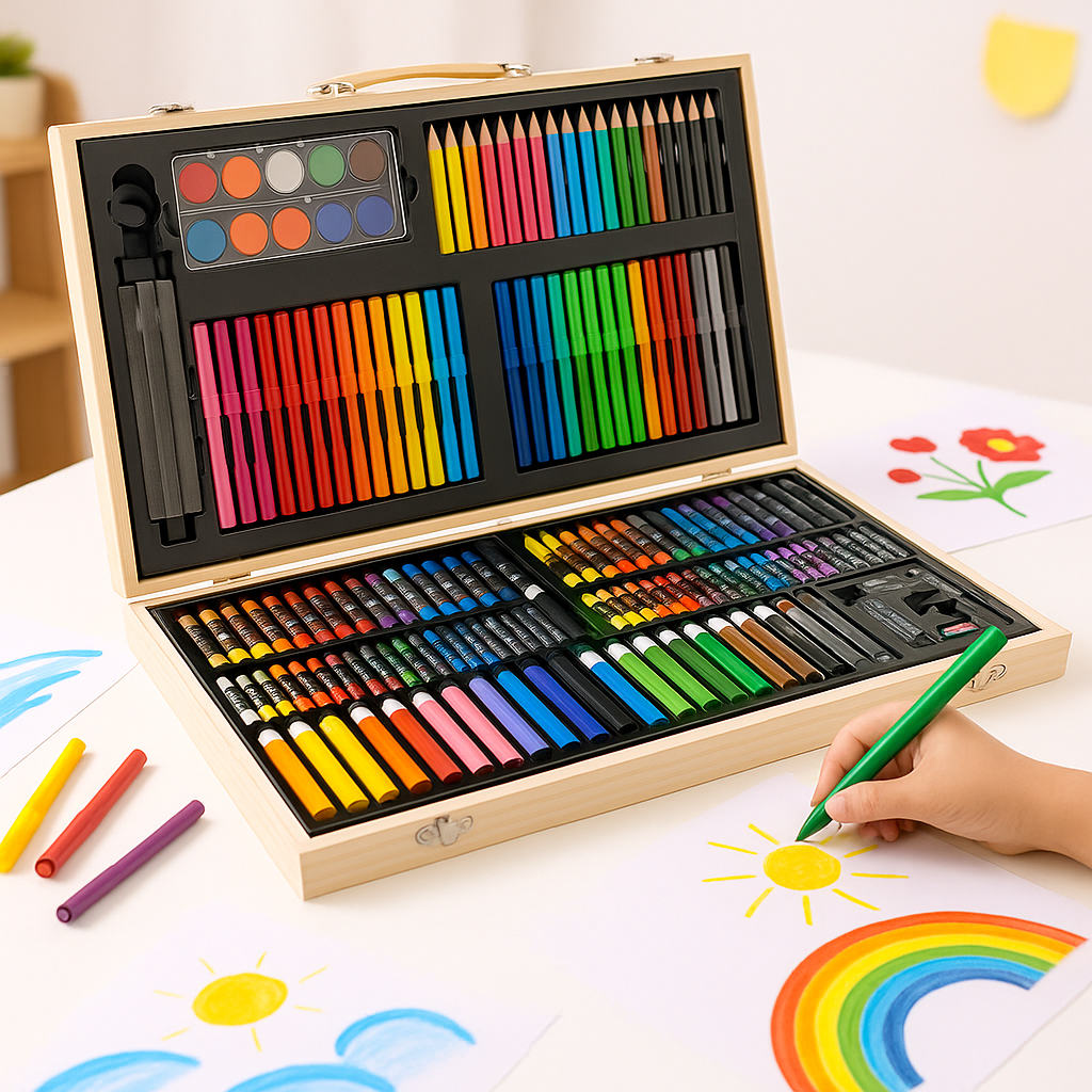 Drveni kofer sa 180 delova za crtanje samo 1999 din !!!