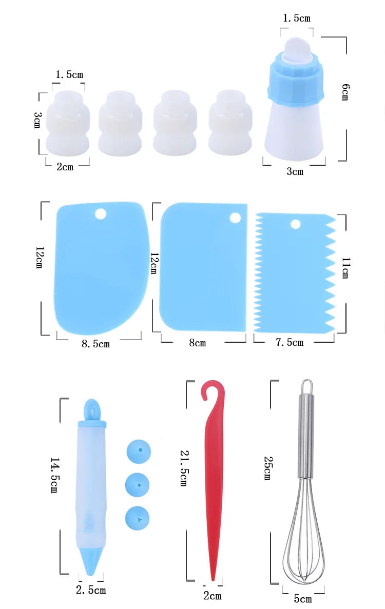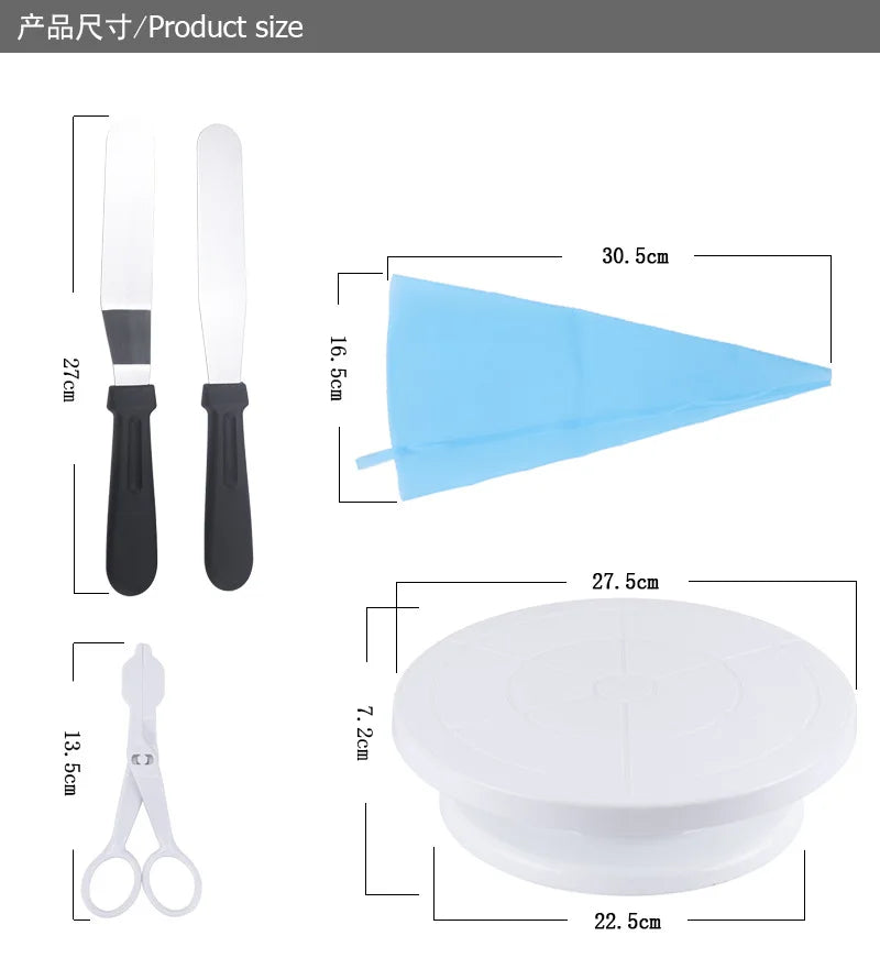 Ovaj komplet za ukrašavanje torti pruža sve što vam je potrebno za pravljenje savršenih kolača, bilo da ste početnik ili iskusni pekar. Uključuje: