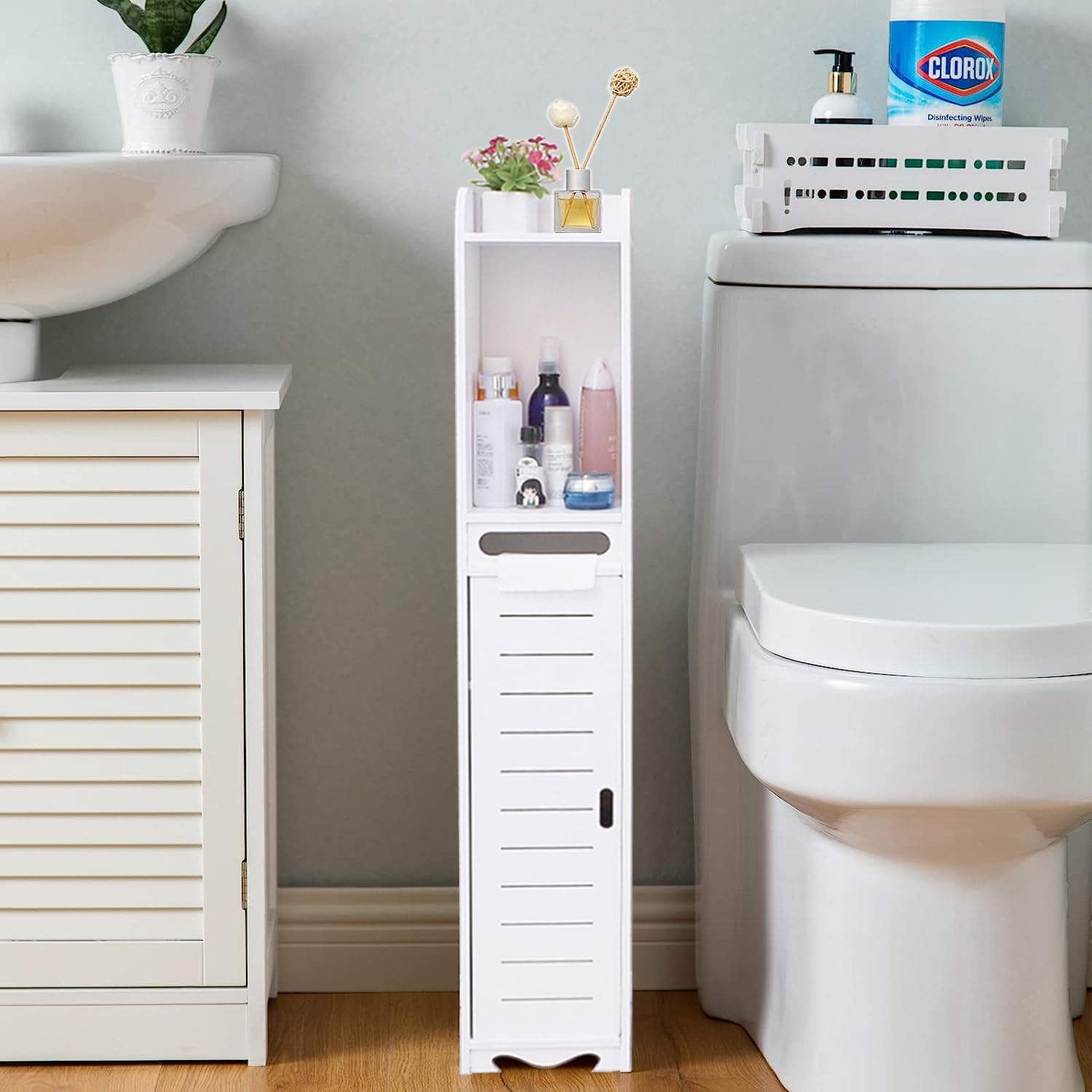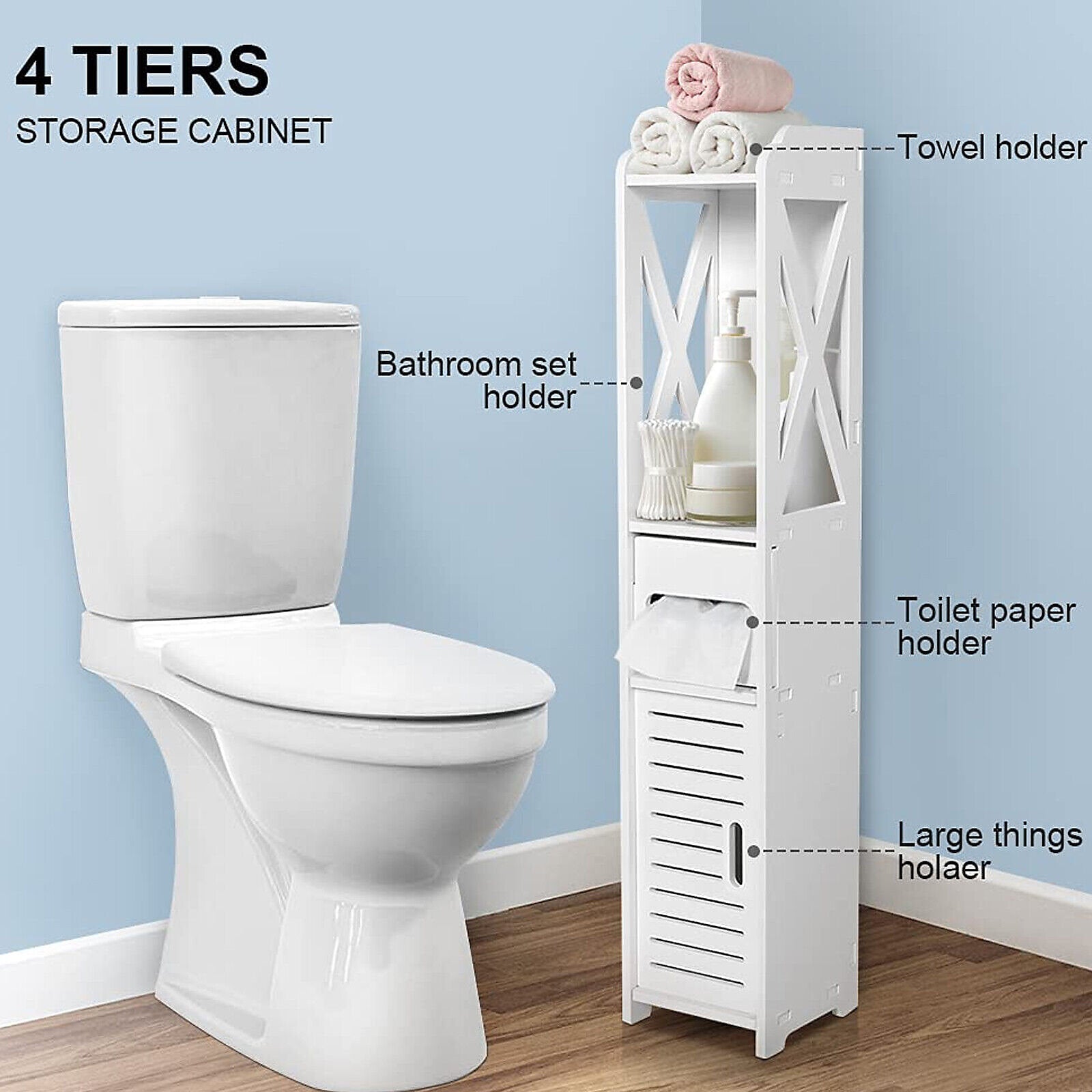 Ormarić za skladištenje 3-u-1: Gornji deo je veliki prostor za odlaganje gde možete čuvati peškire, toaletne potrepštine i kozmetiku u prostranoj fioci za održavanje reda. Srednja polica može da služi za odlaganje toalet papira. Donja polica je ormarić sa vratima u kojem možete staviti obuću ili peškire.