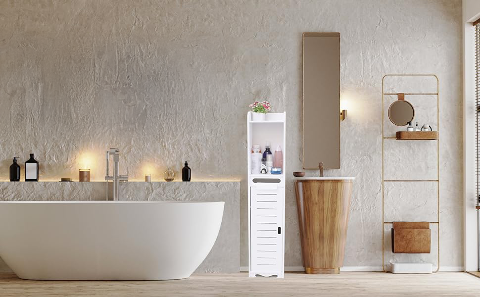 Štedi prostor: Tro nivoa dizajna. Nedostaje li vam prostora za skladištenje u malom kupatilu? Ovaj visok ormarić je pravo rešenje! Tanak i kompaktan, pruža dovoljno prostora za sve vaše kupatilske potrepštine, a zauzima malo mesta na podu.