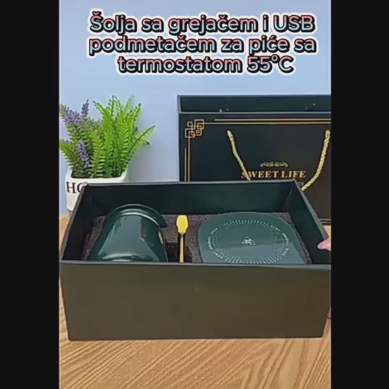 Šolja sa grejačem i USB podmetačem za piće sa termostatom 55°C